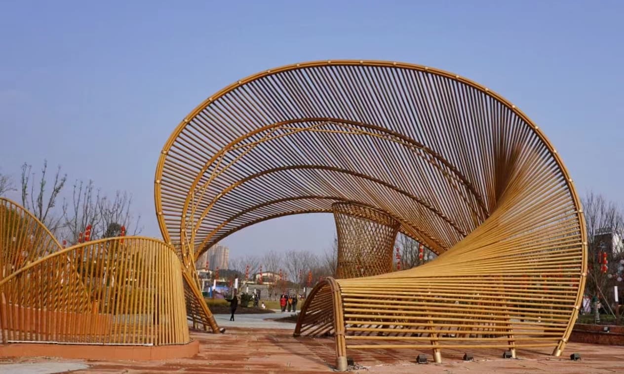 專業(yè)生產(chǎn)戶外重組竹材料,扶手欄桿、廊架、花箱坐凳,竹結(jié)構(gòu)、竹建筑等